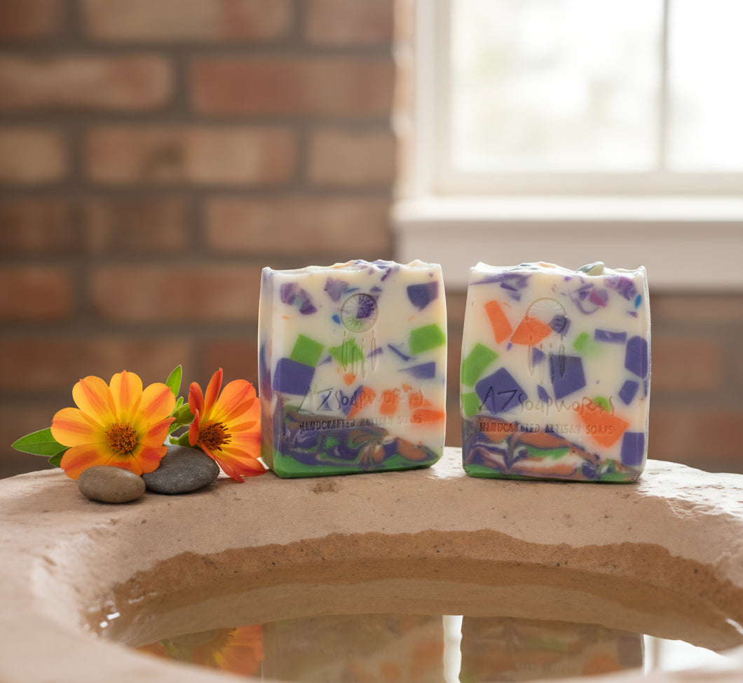 This soap is summer on red rock — pure and simple. Slide Rock Soirée is inspired by Slide Rock State Park in Sedona, where swimmers and sunseekers have turned slick canyon stone into Arizona’s most iconic natural water slide. With bay leaves and bright orange zest, this bar is fresh, clean, and a little spicy — like citrus grove air after a desert rain.